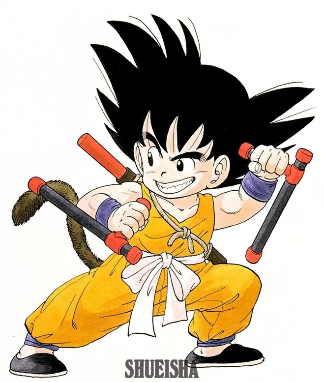 Un Goku visible sur le brouillon de la couverture du Weekly Shonen Jump n°7 paru le 12 janvier 1985. Un Goku brandissant une paire de tonfas accompagné du texte "Collecte sept Dragon Balls et invoque Shenron!", sur une couverture sur laquelle était également visible un énorme Shenron. Mais si ce Goku intrigue, c'est surtout pour la présence des tonfas. En effet, il est rare que Goku manie une autre arme que son Nyoibo.