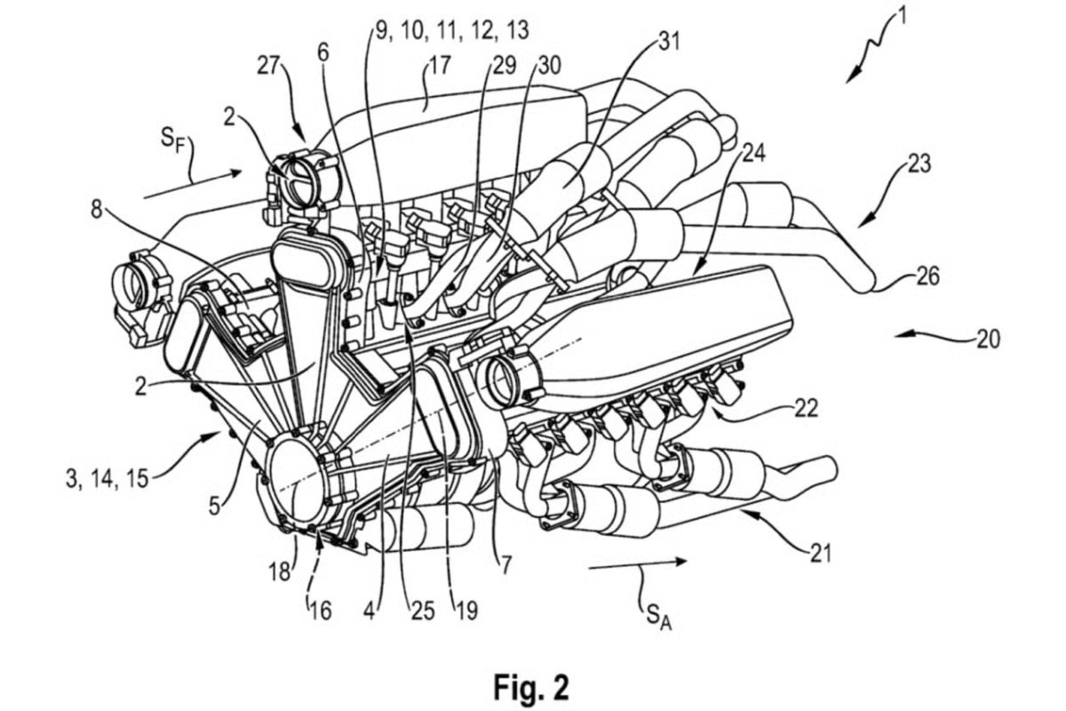 La fiche technique mentionnée dans le brevet a de quoi impressionner. Chaque rangée de cylindres pourrait être associée à son propre turbocompresseur, donnant ainsi naissance à un moteur tri-turbo, à la fois compact et ultra performant.