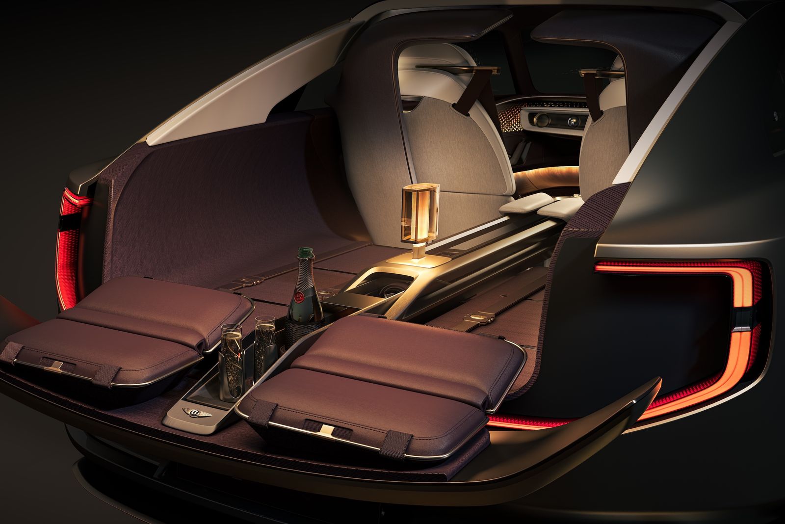 Sans oublier le seau à champagne escamotable dans le coffre. Même les matériaux boxe dans une autre catégorie : laine durable, titane imprimé en 3D et textiles qui brillent à la lumière comme du cristal.