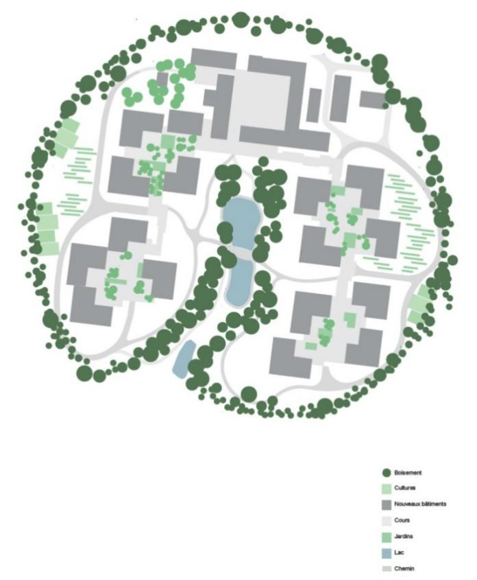Les architectes ont adapté leurs plans aux exigences thérapeutiques : « Pas de clôture visible, une fluidité de la circulation grâce à de nombreuses voies de cheminement sécurisées, dans un grand espace végétalisé de 7 hectares, bien intégré à la vie sociale et culturelle de la ville » explique l'architecte Nathalie Gréfroire au journal Le Monde.