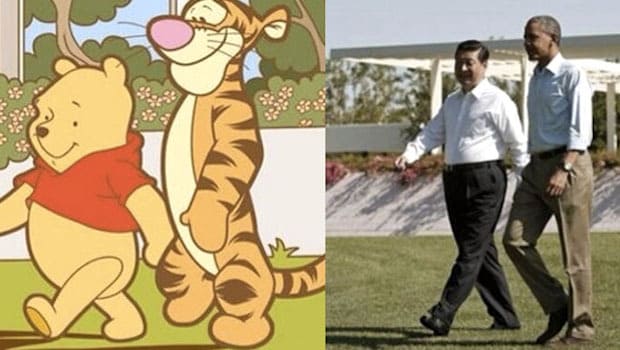En effet, chez nos amis Chinois, on ne rigole ni avec la violence, les jeux d'argent et le sexe. Et encore moins avec Winnie l'Ourson à priori ... Mais pourquoi le personnage Disney ? Tout simplement parce que depuis 2013 le président Xi Jinping est régulièrement moqué pour ressembler à l'ourson. Tout avait débuté avec la visite du président chinois chez son homologue américain Barack Obama. Des internautes avaient alors trouvé amusante la ressemblance du chef de l'Empire du Milieu avec Winnie l'Ourson. Puis, le gag s'est poursuivi l'année d'après quand Xi Jinping serrant la main du premier ministre japonais avait encore été comparé au personnage de dessin animé.
