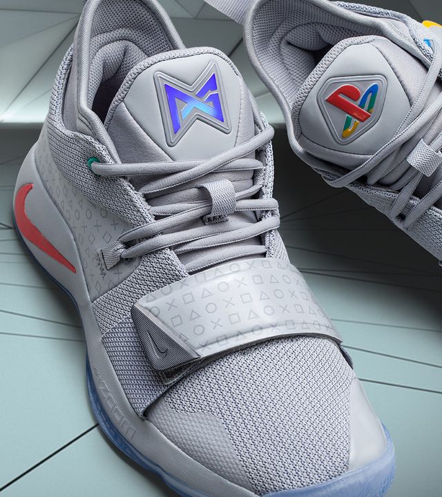 En effet, les PG 2.5 x PlayStation optent pour une couleur grise comme la PlayStation avec en plus, les fameux motifs croix/rond/triangle/carré ainsi que les virgules Nike aux couleurs du logo de la console. A l'intérieur de la languette, on peut également retrouver le logo Power qui est éclairé d'une lumière bleue.