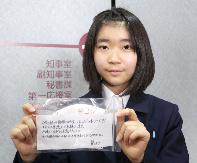 La jeune Hime Takimoto habitant à Kofu, situé dans la préfecture de Yamanashi, et âgée de seulement 13 ans s'est armée de sa machine à coudre et de tissus pour concevoir ses propres masques. Elle n'a vraiment pas chômé puisqu'elle en a fabriqué pas moins de 600 pour en faire don à la préfecture.