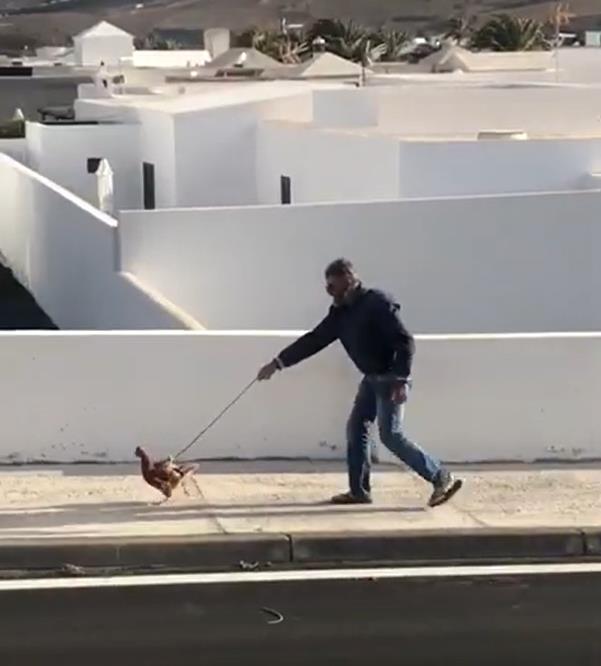 Un homme filmé en train de promener une poule a été identifié et verbalisé par les autorités espagnoles.