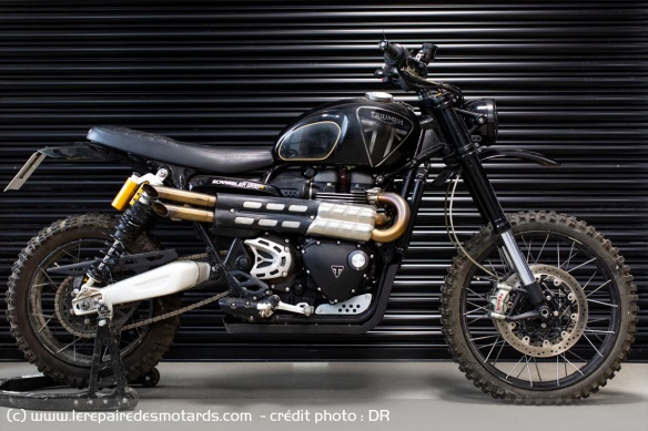 Silencieux Arrow de la Triumph Scrambler Bond Edition.