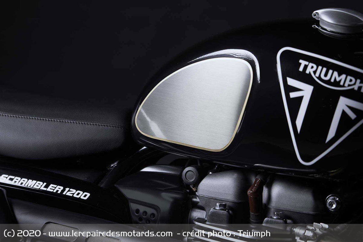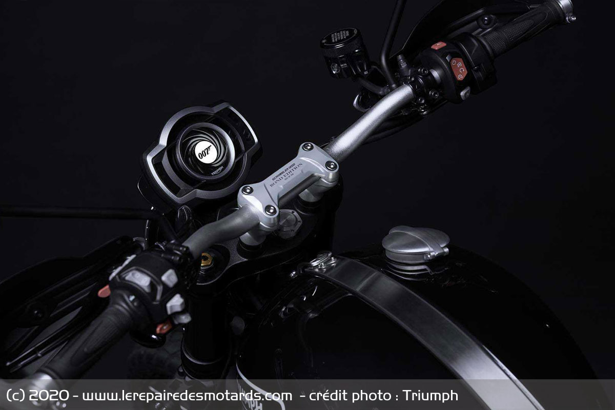 Compteur et plaque numérotée de la Triumph Scrambler Bond Edition.