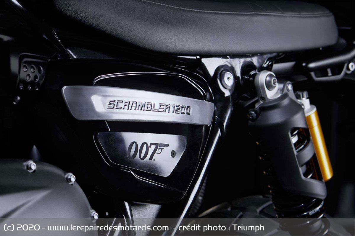 Cette édition limitée de la Scrambler 1200 ne sera produite qu'à 250 exemplaires et sera logiquement accompagnée de son certificat d'authenticité et de sa plaque numérotée placée sur le guidon. On note aussi que l'écran TFT bénéficie d'une animation spécifique reprenant le logo 007 au démarrage, dans le style de la bande annonce du film d'agents secrets. Une housse de protection et un sac à dos en cuir viendront compléter la panoplie.