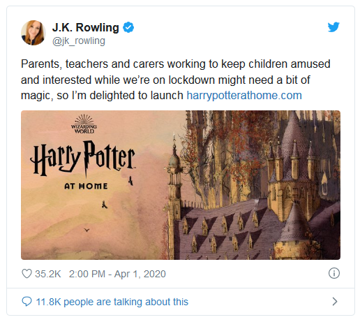 Le confinement est loin d'être fini et il faut trouver de nombreux moyens de s'occuper. Peut-être que ce cadeau de J.K. Rowling va vous aider. Avec le site harrypotterathome.com vous pourrez trouver différents contenus liés au petit sorcier à lunettes. Des histoires, des jeux, des puzzles et même des méthodes de dessins comme "comment dessiner un niffleur". Comme le déclare J.K. Rowling sur son compte Twitter, les parents, professeurs et professionnels qui travaillent avec des enfants font leur maximum pour qu'ils s'amusent pendant le confinement, et un peu de magie fait toujours du bien.