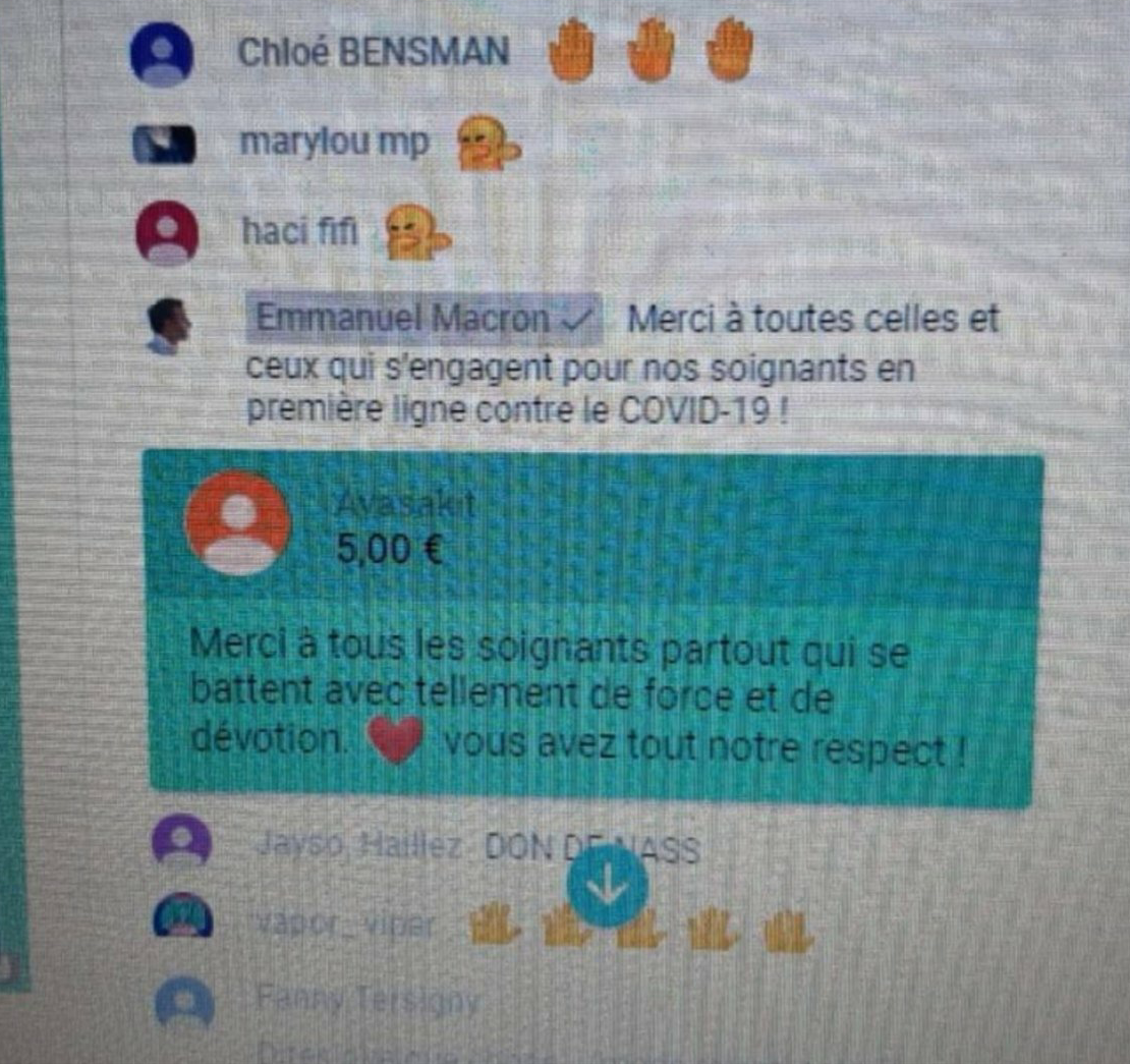 Cette initiative des deux Youtubeurs a été saluée par un invité surprise au cours du Maradon car le président Emmanuel Macron a tenu à commenter l'évènement en direct sur le chat en adressant un message : "Merci à toutes celles et ceux qui s'engagent pour nos soignants en première ligne contre le COVID-19 !".