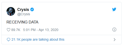 Graphismes enjôleurs, gameplay explosif, la licence Crysis est rapidement devenue une référence du FPS. Après avoir marqué les mémoires, la saga a lentement été passée sous silence, Crytek s'était concentré sur d'autres projets, à l'instar de Ryse: Son of Rome, qui accompagnait le lancement de la Xbox One, et Hunt: Showdown, paru en août dernier. Suffisamment d'eau a coulé sous les ponts semble-t-il puisque le compte Twitter de Crysis, inactif depuis 4 ans, a été réactivé le 13 avril dernier, publiant dans la foulée un tweet mystérieux.