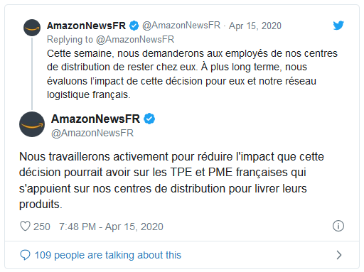 Ce n'est pas pour autant qu'Amazon est fermé, bien au contraire, le géant du e-commerce compte fonctionner grâce à son marketplace et ses entrepôts en Europe pour livrer les clients comme on peut le lire sur le compte Twitter officiel d'Amazon News France.