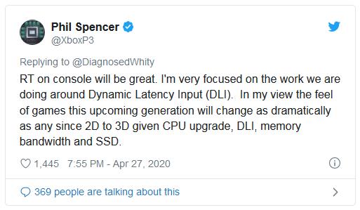 Très actif sur les réseaux sociaux, Phil Spencer, le boss de Xbox, a une nouvelle fois répondu à certaines interrogations des internautes. L'une d'entre elles concernait les technologies dont profite la Xbox Series X, fer de lance nouvelle génération de Xbox. Des nouvelles technologies comme le ray-tracing, largement mis en avant ces derniers mois par Nvidia, mais également le Dynamic Latency Input, ou DLI, qui vient réduire au maximum le délai de réponse de votre console après une action sur votre manette :