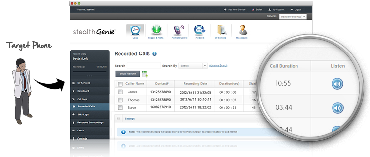 Ensuite, il y a les applications qui sont spécifiquement conçues pour écouter nos conversations. L'une des plus connues a été StealthGenie , elle était disponible sur iOS, Android et BlackBerry et autorisait l'accès à distance aux SMS sortants, aux images et à l' interception des appels entrants.