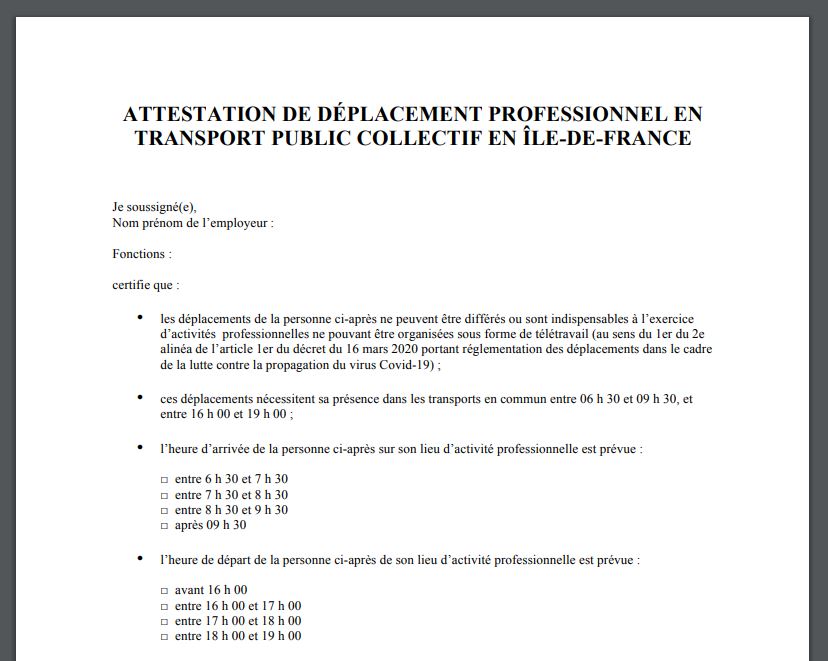 Pour ces raisons, vous devrez vous munir d'une auto-attestation à remplir vous-même, récupérée juste là.