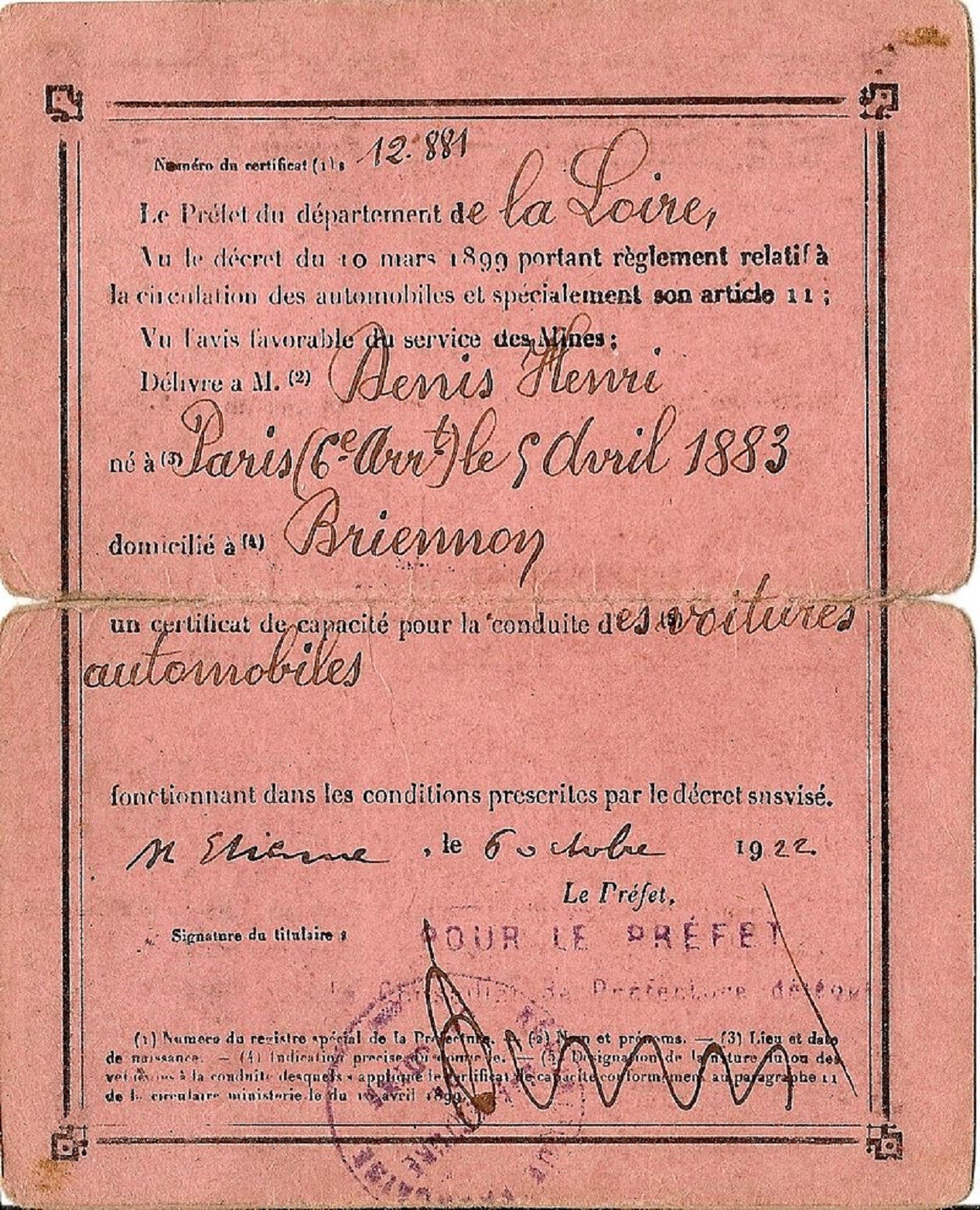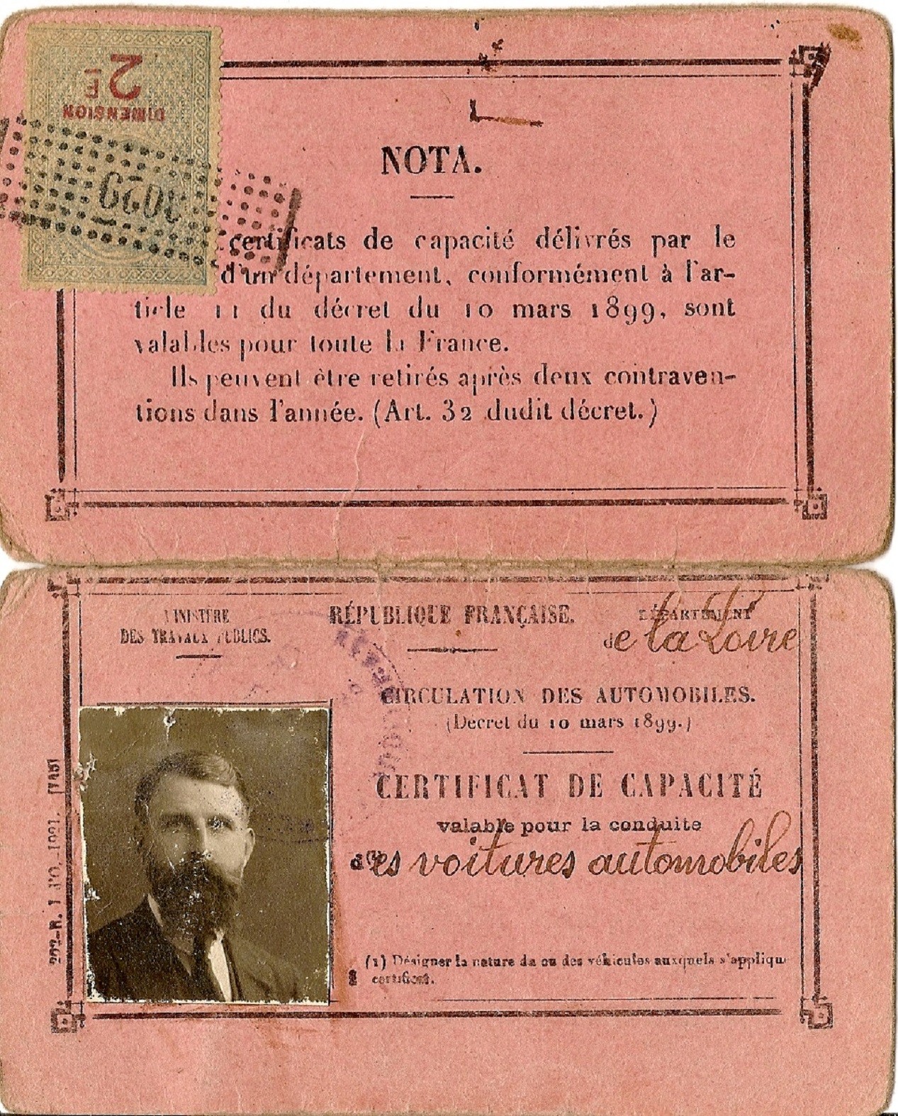 Le document pouvait être délivré à toute personne de plus de 21 ans et de sexe masculin. Mais il fallait auparavant passer un examen devant un ingénieur des Mines. Cet examen consistait à savoir démarrer le véhicule, le diriger, l'arrêter tout en ayant acquis quelques notions de dépannage. À cette époque, la vitesse était limitée à 20 km/h sur les routes de campagne et à 12 km/h en ville, pas de quoi faire des folies en matière de vitesse.