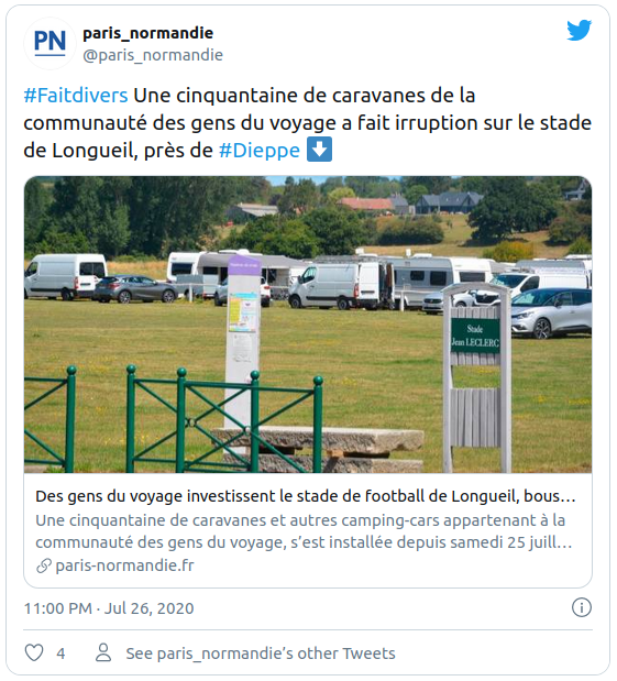 D'après le quotidien régional, la gérante du restaurant La P'tite Pause, établi à proximité du terrain de football, aurait fermé son établissement « par peur » après l'installation des gens du voyage.