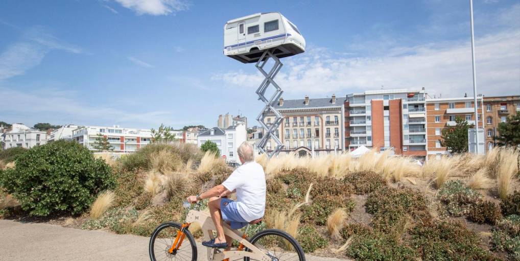 « L'idée, c'est de poétiser la ville et notamment les éléments qui sont déjà présents, explique dans une vidéo l'artiste lyonnais invité pour la 4e saison d'Un été au Havre. Donc, la caravane au bord de la plage, comme ça, ça a du sens, c'est-à-dire qu'on a envie de se poser ici. J'aime faire des œuvres qui fusionnent avec le paysage. »
