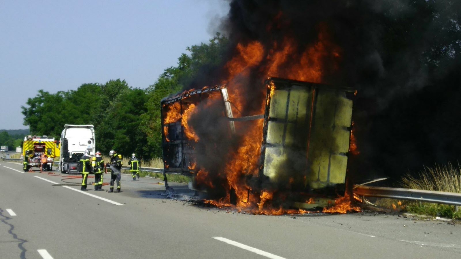 Mercredi soir, vers 23 heures, la remorque d'un camion a pris feu alors qu'il circulait sur l'A72, entre les sorties Andrézieux-Bouthéon et Villars.