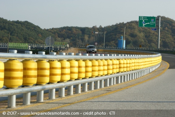 ETI présente sa glissière de sécurité du futur ETI, entreprise sud-coréenne spécialisée dans la construction de glissières de sécurité, propose sa vision du modèle du futur, pensé pour réduire les risques de blessures à la suite d'un accident : le Roller-System.