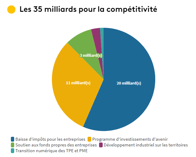 Les 11 milliards d'euros prévus dans le prochain Programme d'investissements d'avenir (PIA) seront fléchés vers le plan de relance et concerneront notamment des aides à l'innovation de Bpifrance. Les 3 milliards d'euros de soutien aux fonds propres des entreprises seront accordés via une garantie publique associée aux prêts participatifs accordés par les banques ou à des fonds qui seraient labellisés par l'Etat. Le gouvernement espère ainsi créer un effet de levier et mobiliser le secteur bancaire entre 10 et 15 milliards d'euros.