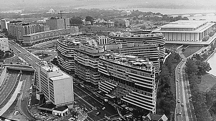 Le complexe immobilier du Watergate, abritant appartements de luxe, bureaux et hôtels © National Archives and Records Administration.