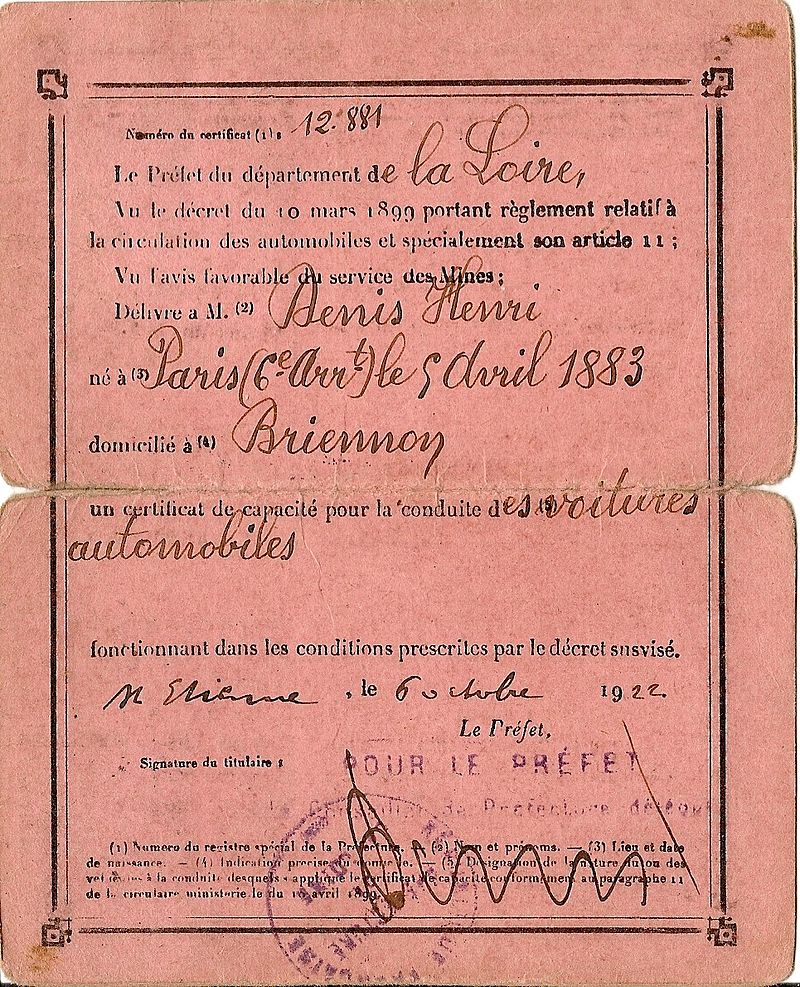 1922 : l'année du premier permis de conduire.