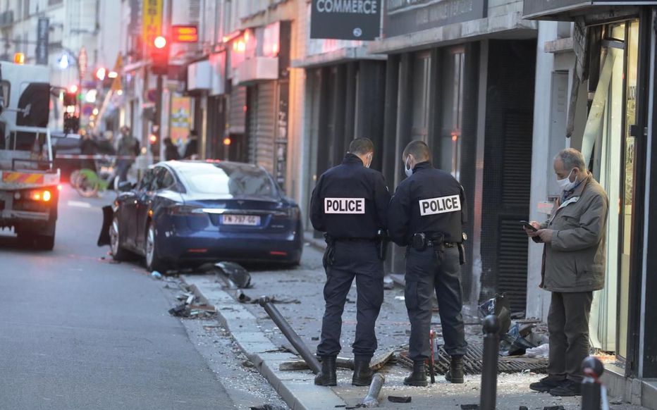 Rue de la Croix-Nivert (XVe), ce mardi. Une personne âgée au volant d'une Tesla a fauché deux piétons, emmenés à l'hôpital en urgence absolue.