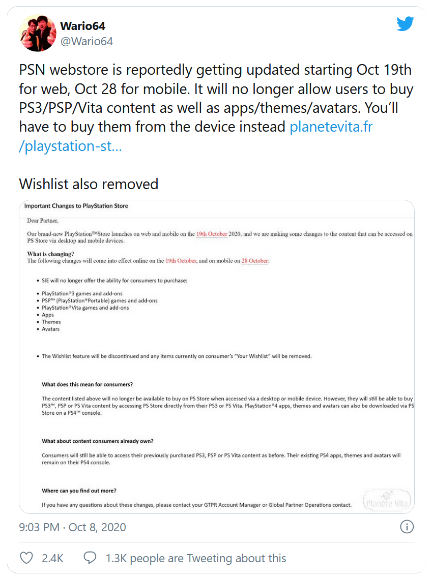 Sony semble porter toute son attention sur la PlayStation 5, délaissant au passage ses consoles antérieures. Bien qu'une grande partie des joueurs se tournent vers la génération actuelle de console, voire la suivante, des joueurs continuent d'apprécier leurs consoles plus anciennes. Reste à savoir si Sony modifiera de nouveau son site pour permettre l'affichage et l'achat des jeux PS4, PSP et PlayStation Vita plus facilement.