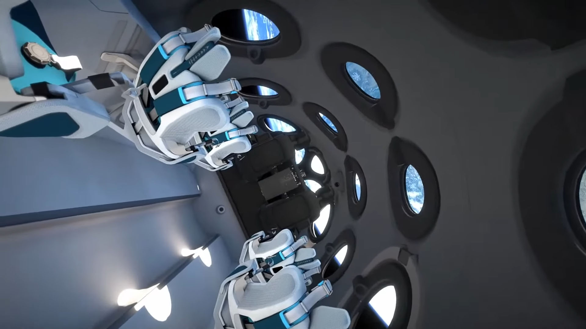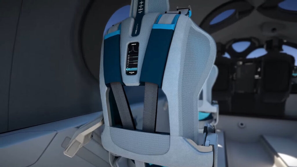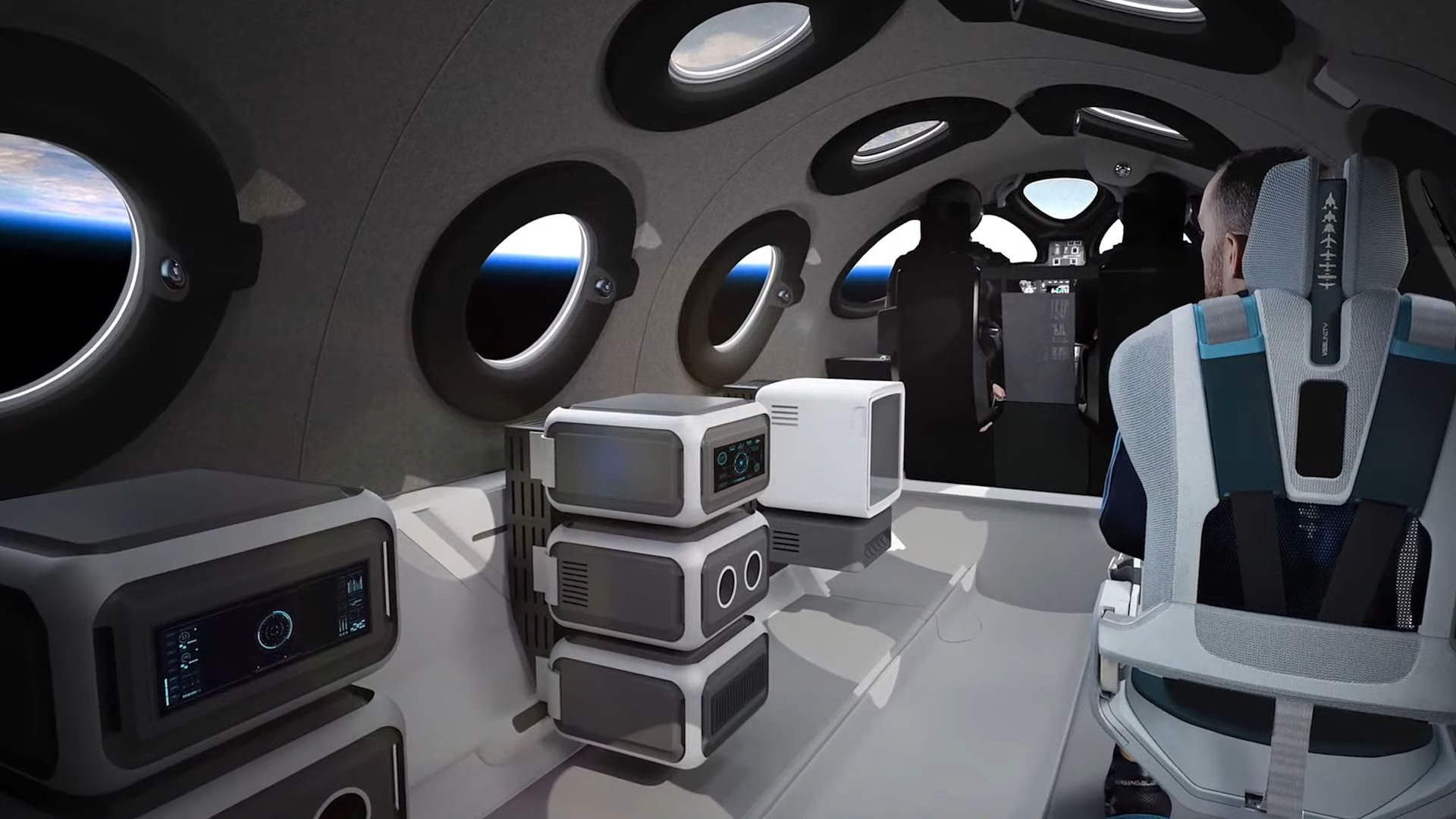 Comme dans un avion, les passagers sont situés le long des parois de l'appareil, où un hublot dédié leur permet de jeter un coup d'œil à l'intérieur. Mais ce qui change ici, c'est la présence d'autres hublots qui parcourent le reste de la carlingue, en particulier au niveau du plafond, offrant ainsi aux astronautes d'un jour l'occasion de profiter de plusieurs vues en fonction de l'orientation du VSS Unity.