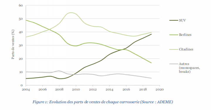 Leur nombre a été multiplié par huit en une décennie. Les clients peuvent désormais choisir entre 115 modèles différents, tous plus puissants les uns que les autres, plus gros et plus larges. « Le top cinq des véhicules les plus vendus sur les canaux des particuliers et des professionnels montre bien cette hégémonie des SUV et des berlines », relève ainsi Le Journal de l'automobile.