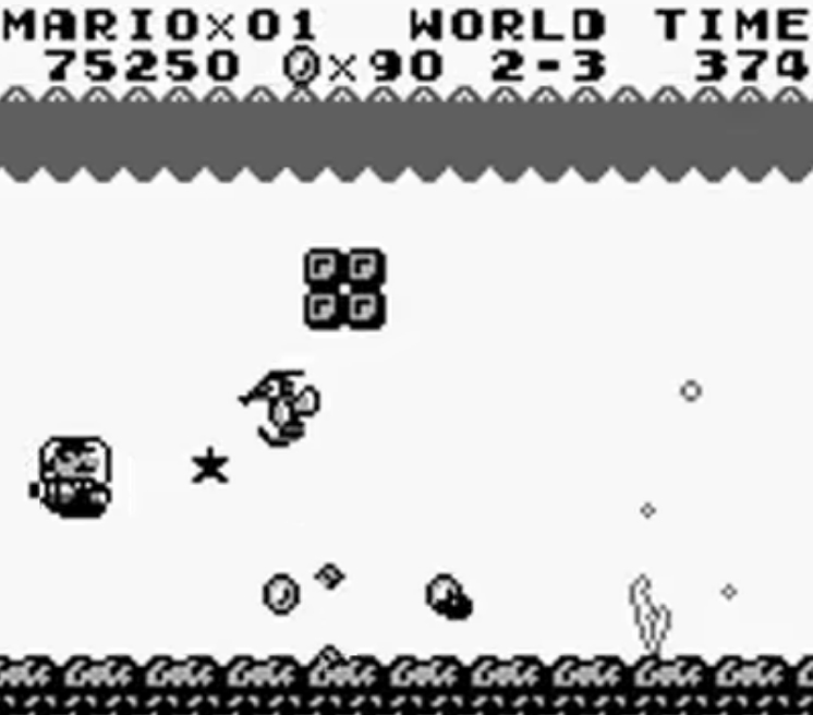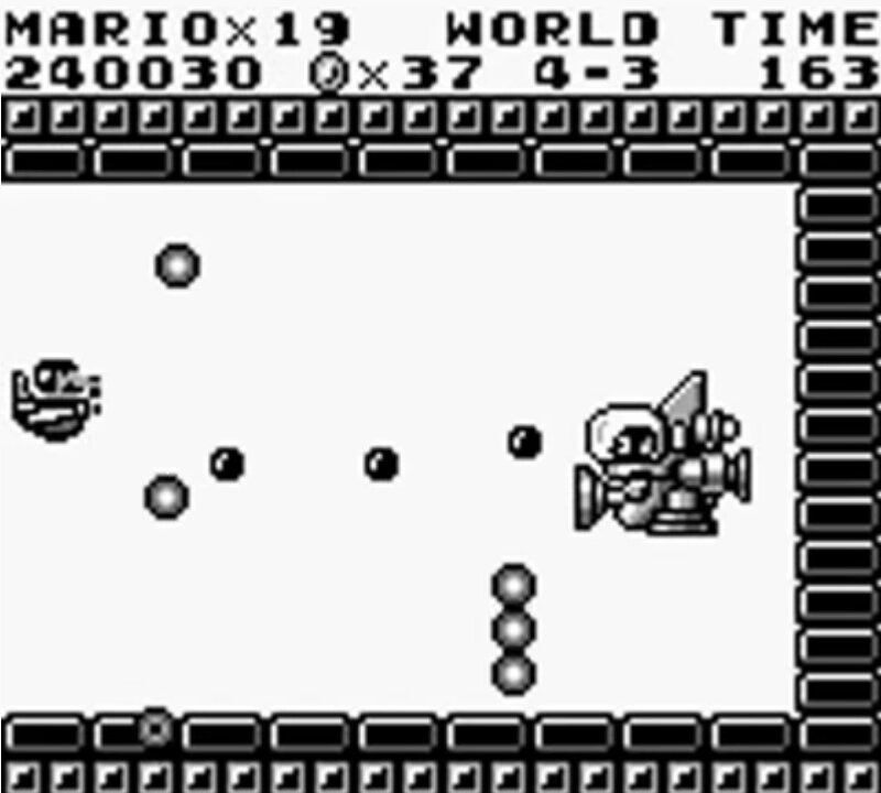 Particulièrement travaillé pour combler les mirettes, malgré un affichage en seulement quatre niveaux de gris, Super Mario Land a également bénéficié du talent de Hirokazu Tanaka, le compositeur (de génie) de Nintendo, qui a oeuvré aussi sur Donkey Kong, Metroid, Kid Icarus....