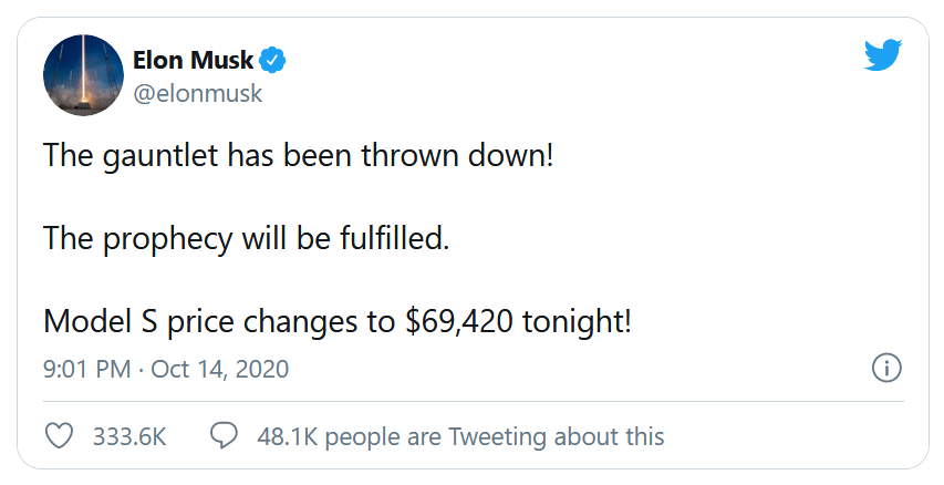Elon Musk : 69 420$, le nouveau prix de la Tesla Model S est un gros troll