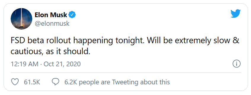 Naturellement, s'agissant que d'une version bêta, les conducteurs qui ont eu le privilège d'essayer la "Capacité de conduite entièrement autonome" ont été invités à être très prudents, un accident est vite arrivé. Ils doivent de ce fait garder les mains sur le volant.