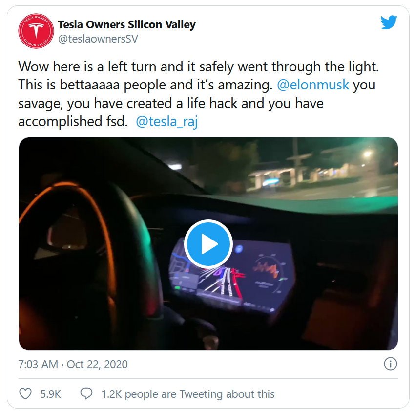 Quelques testeurs ont ainsi pu essayer, à l'invitation d'Elon Musk, la "Capacité de conduite entièrement autonome" en ville, alors que jusqu'à présent la conduite 100% autonome pouvait être utilisée uniquement sur l'autoroute. Les testeurs ont ainsi pu filmer leur expérience et leur enthousiasme.