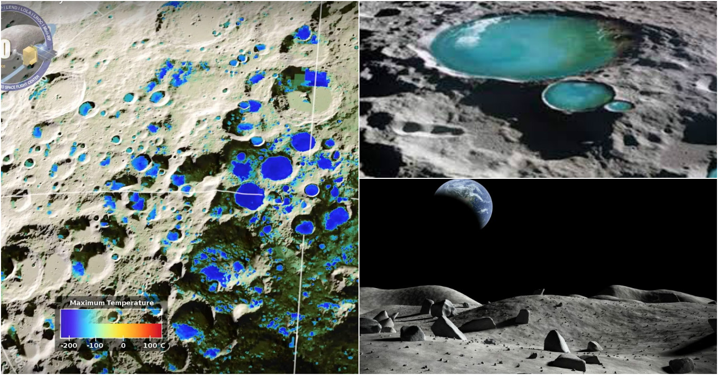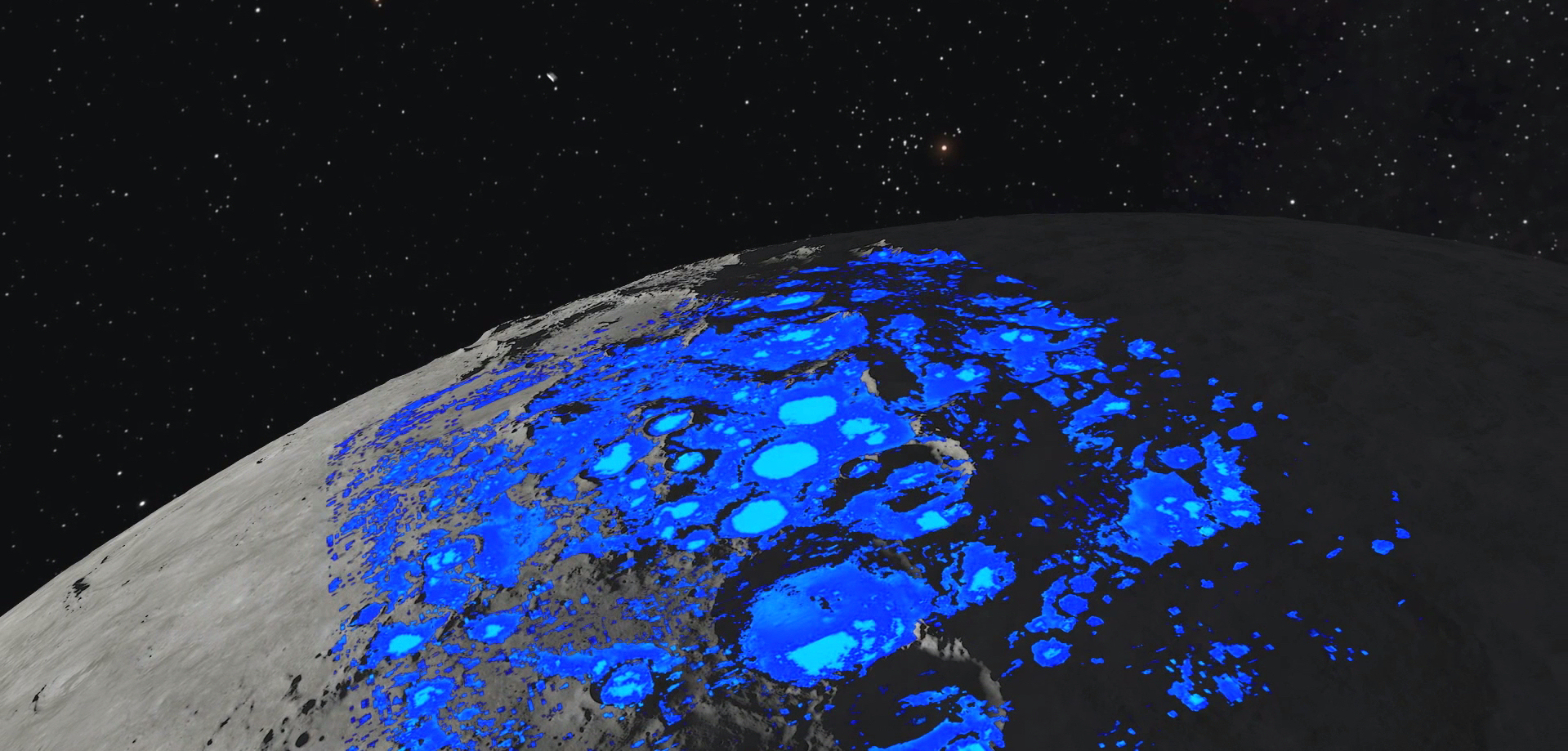 Nous pouvons voir sur la carte de gauche les régions de la Lune qui possèdent une forte teneur en eau.
