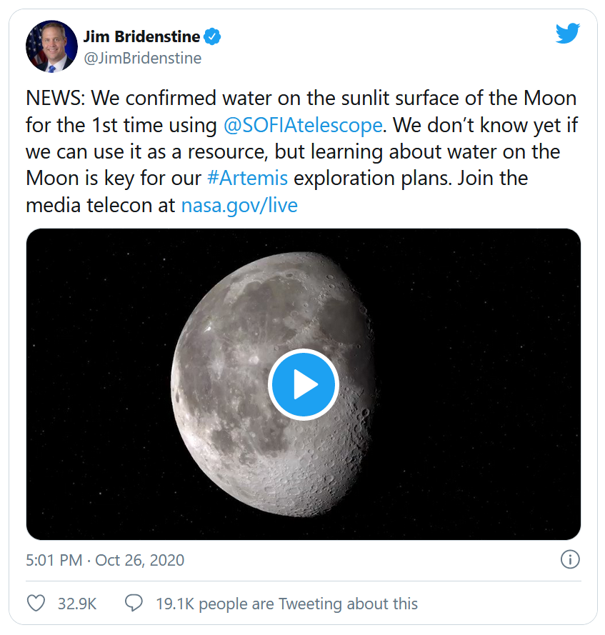 Le 26 octobre à 12h (heure américaine), la NASA a mené une téléconférence diffusée en direct sur le site Web de l'agence, qui a permis de dévoiler la toute nouvelle découverte effectuée par l'Observatoire stratosphérique pour l'astronomie infrarouge (SOFIA) concernant la Lune.