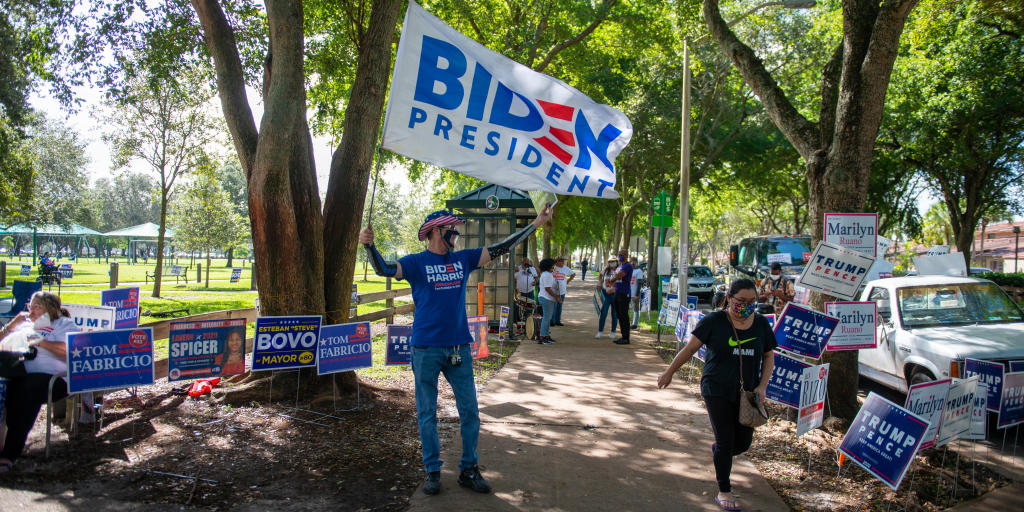 Ils avaient espéré une « soirée de la victoire » : mardi 3 novembre, le groupe des « Cubains pour Biden » s'était donné rendez-vous devant un vaste centre de convention du quartier branché de Wynwood, à Miami. Une réunion typique des temps de pandémie, tout en extérieur et masquée, plutôt clairsemée, certains participants ne quittant pas leur voiture. Mais une soirée pleine d'espoir, du moins au début. Devant l'écran géant branché sur la chaîne CNN, les cartes défilaient, comté par comté, ponctuées par les exclamations enthousiastes d'un Monsieur Loyal. Bleu, puis rouge, puis bleu et encore rouge, de plus en plus rouge, la couleur du Parti républicain.