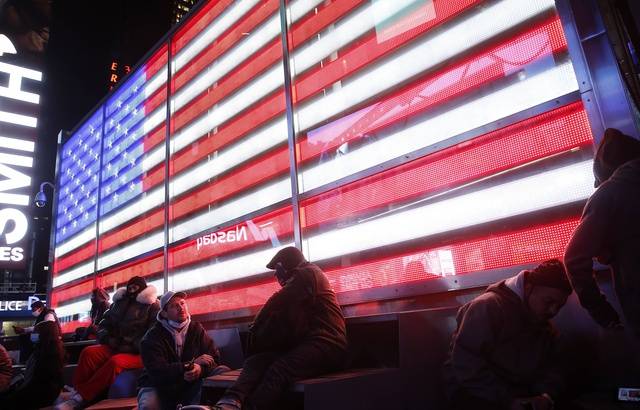 Les résultats de l'élection sur écran géant à New York, le 3 novembre 2020.