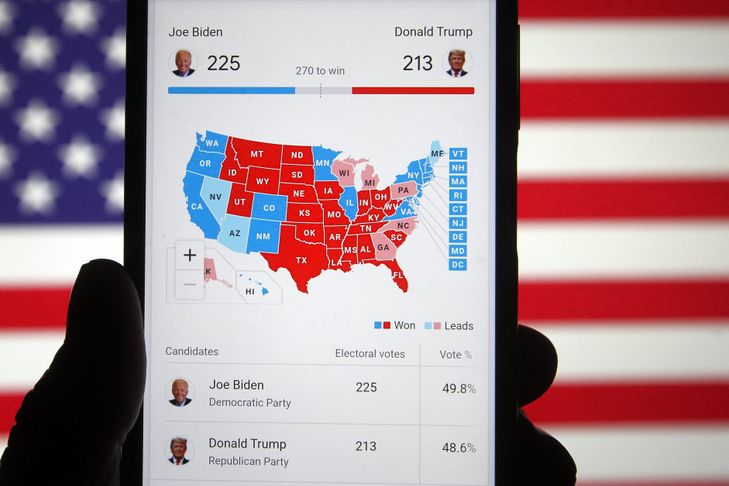 Comme prévu en raison de la pandémie, l'avalanche de bulletins de vote envoyés par correspondance a retardé le dépouillement dans plusieurs États où aucune tendance nette ne se dégageait au soir du 3 novembre. Une partie d'entre eux devraient livrer leurs résultats entre mercredi et jeudi : la Georgie (16 grands électeurs) et le Wisconsin (10).