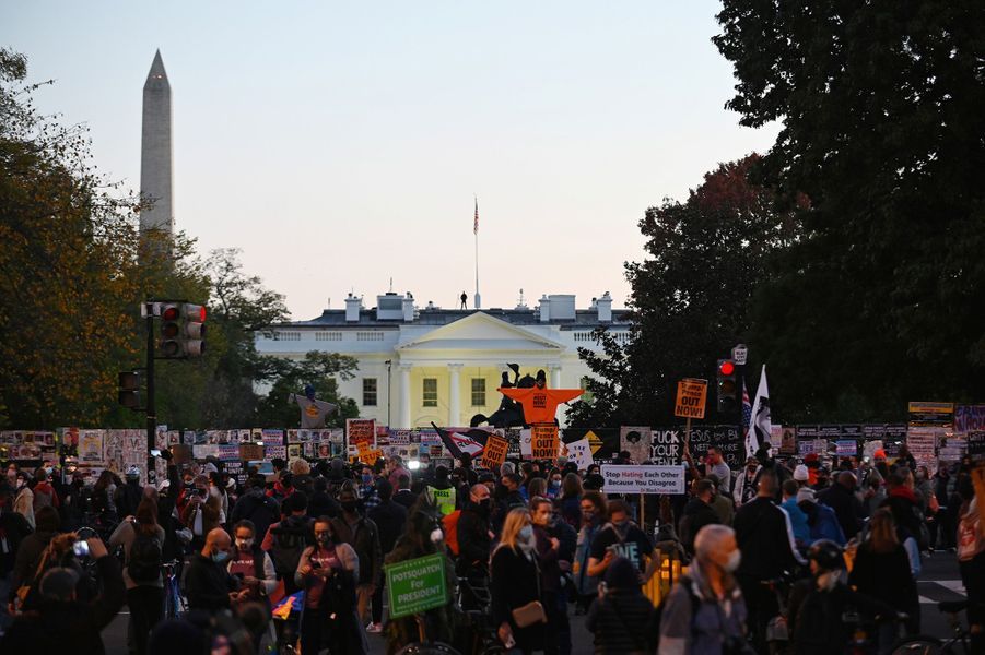 Alors que 200 personnes triées sur le volet sont autour du président Trump à la Maison Blanche, les partisans de Joe Biden attendent fébrilement les résultats à Washington.