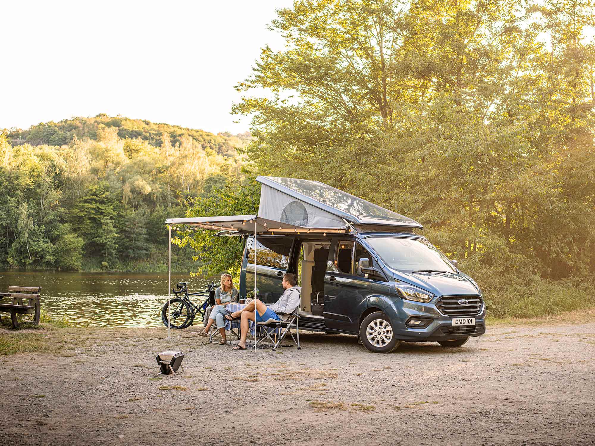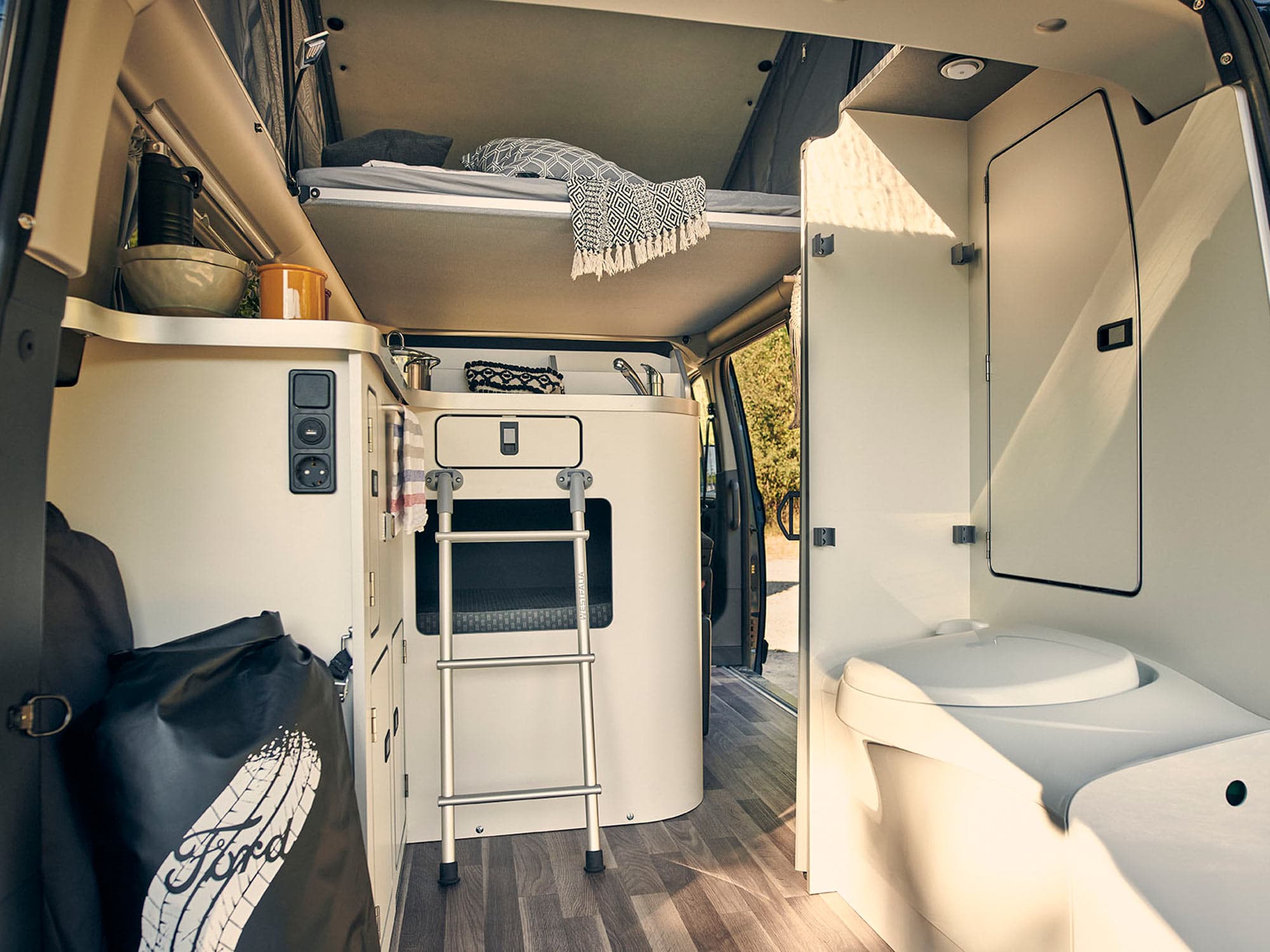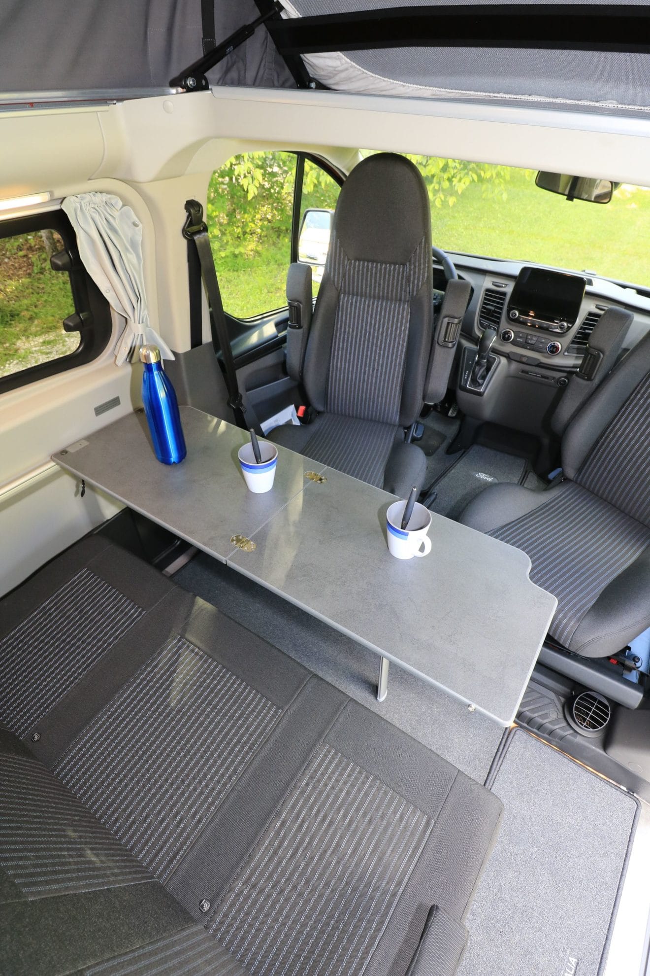 Très efficace, même si dans ce cas il faut compter plus de 59 000 € en Allemagne (prix France à définir). Il dispose aussi d'un toit relevable, ne mesure que 4,97 m de long, ce qui sert sa silhouette assez sportive. Mais sachez que Ford le propose aussi avec une rehausse fixe, alors à 2,80 m de hauteur hors-tout, et le livre également en Nugget « Plus » avec cette même rehausse mais sur le châssis long du Custom (5,34 m) pour loger un espace sanitaire en bonus.