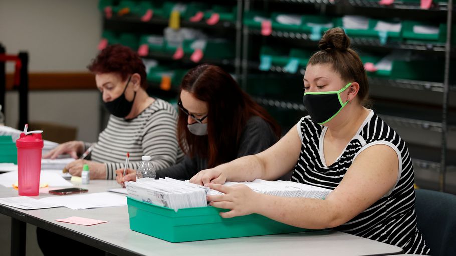 Le personnel des bureaux de vote du comté de Lehigh, en Pennsyvanie, recompte les bulletins par correspondance, novembre 2020.