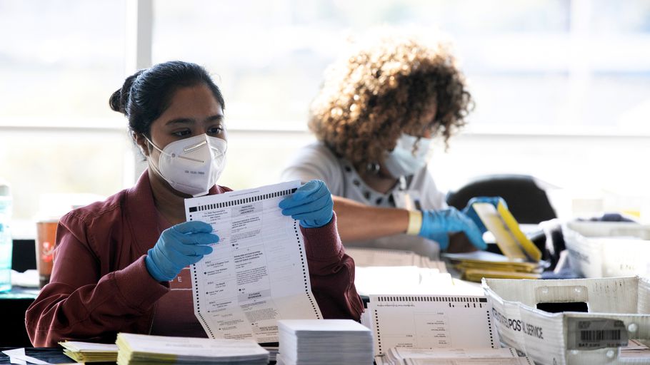 Deux femmes participent au dépouillement, le 4 novembre 2020, à Atlanta (Géorgie).