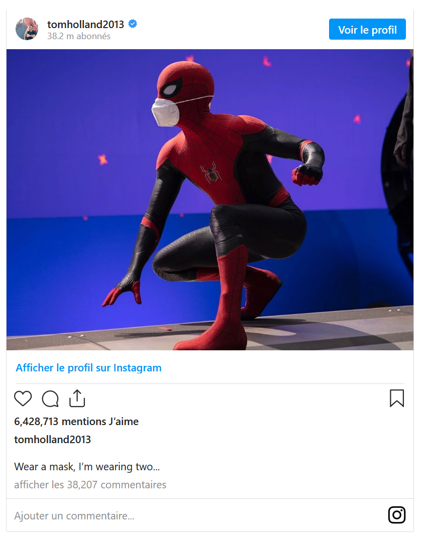 Pour ceux qui se demanderaient si nous pourrions voir, à l'avenir, des personnages du MCU porter des masques, ne vous en faites pas trop. En raison du saut dans le temps qui s'est produit dans Avengers: Endgame, le MCU est désormais passé à l'an 2023 (ou 2024, il y a quelques légers désaccords à ce sujet chez les fans). Dans tous les cas, il est fort à parier que les réalisateurs "sauteront" notre période actuelle. Il faut aussi rappeler que les films du MCU restent de la fiction, et qu'il est fort peu probable que nos héros aient le visage mangé par un masque. Nous ne devrions donc logiquement pas voir de Spider-Man portant un masque le 17 décembre 2021, soit le jour où nous devrions enfin pouvoir regarder dans nos salles de cinéma préférées (espérons-le) Spider-Man 3.