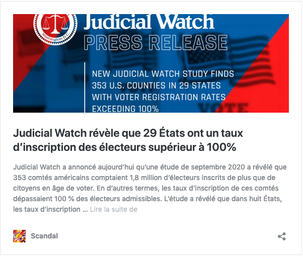 L'étude de Judicial Watch qui démontre qu'un 1,8 millions d'électeurs sont fantômes dans 29 États accentuant le caractère ‘sale' des élections.