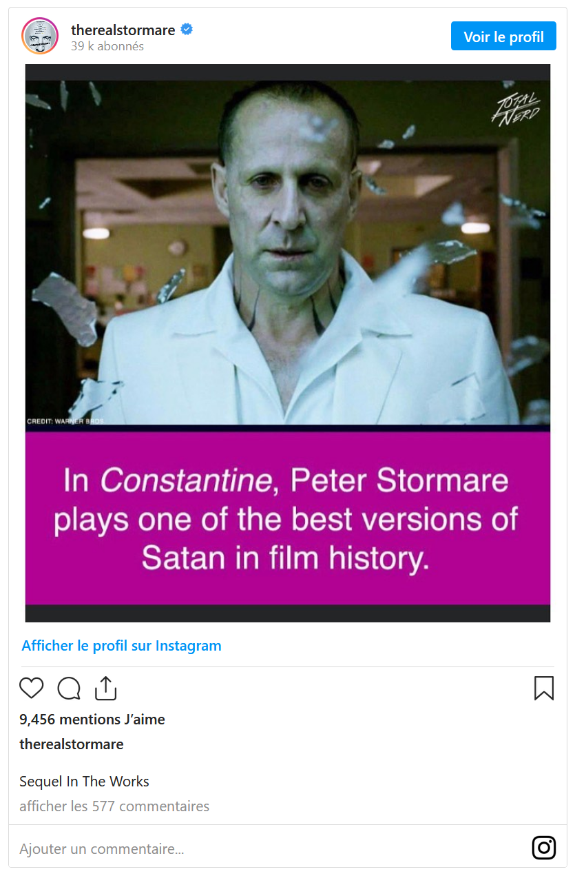 Cependant, une publication sur Instagram de l'acteur Peter Stormare, qui interprétait Lucifer dans Constantine, est venue redonner espoir aux fans du premier film : "Une suite en cours", écrit laconiquement l'acteur.