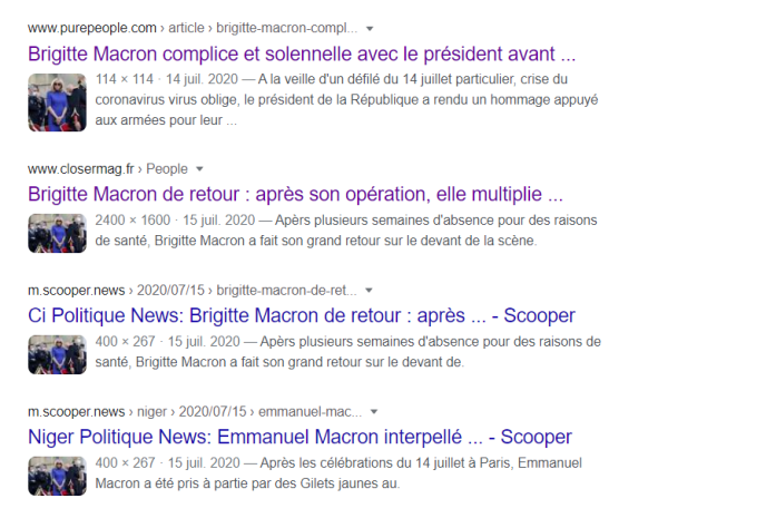 S'il est difficile d'accuser Brigitte Macron d'enfreindre la règle, il est possible en revanche de blâmer son époux. Un portfolio publié par Paris Match permet d'observer qu'Emmanuel Macron ne respecte pas certaines consignes d'hygiène et de distanciation physique : il pose sa main sur le coude de la ministre des armées, Florence Parly, et porte à plusieurs reprises ses mains à son masque.