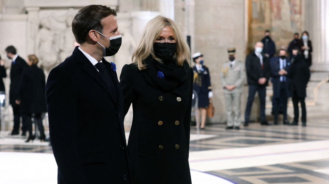 C'est presque comme si Emmanuel Macron et son épouse Brigitte étaient seuls au monde. Ils ne l'étaient pourtant pas. Si cette entrée au Panthéon a été privée de public en raison de la crise sanitaire, quelques prestigieux invités étaient tout de même présents. La première dame et le président de la République ont ainsi été saluer - toujours ensemble - le président du Sénat Gérard Larcher, la maire de Paris Anne Hidalgo ou la ministre de la Culture Roselyne Bachelot.