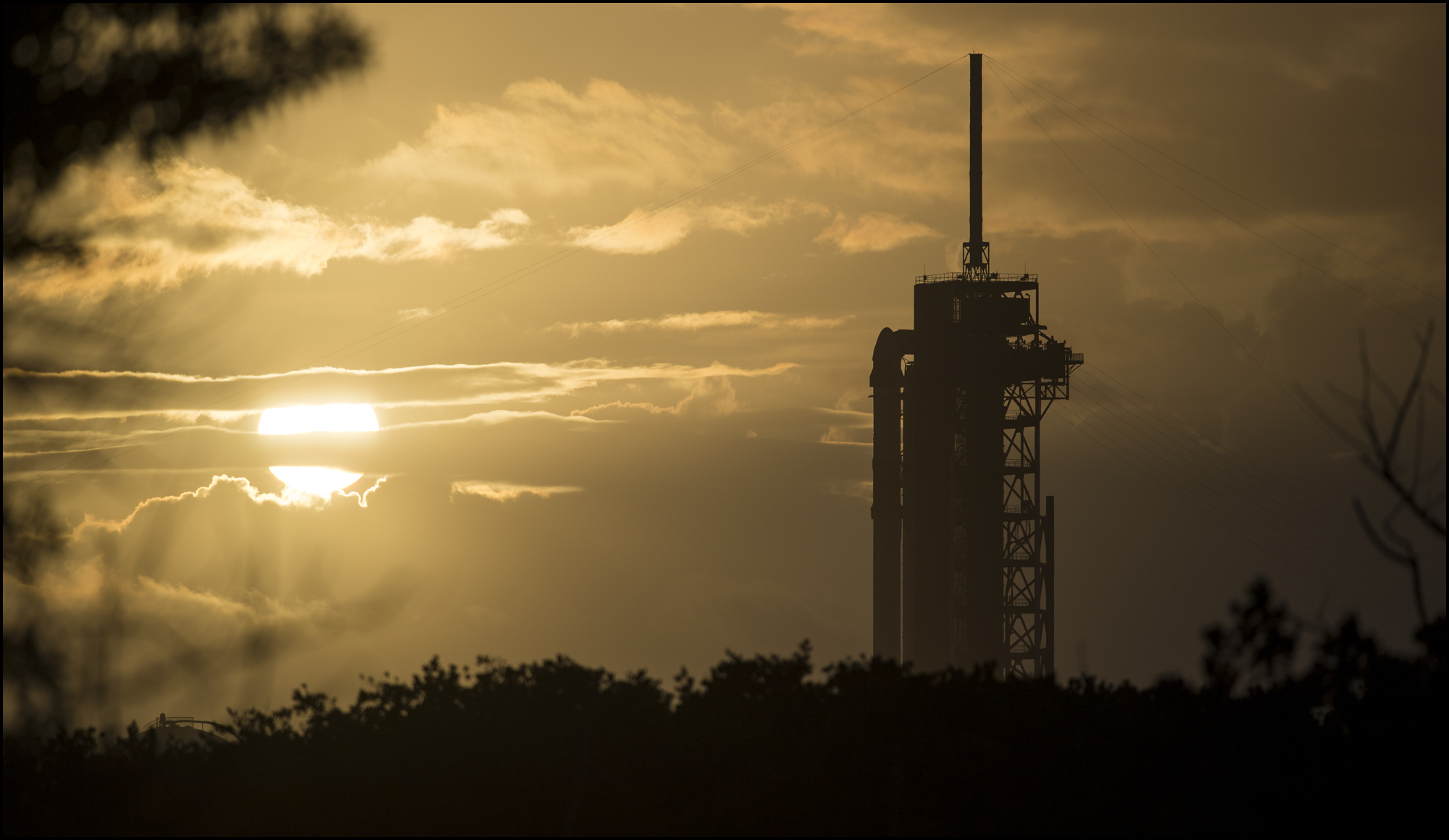 Falcon 9 à la verticale avec la capsule Crew Dragon, quelques jours avant le décollage.