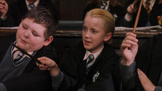2) Il demande à Drago de ne pas trop maltraiter Harry Potter.